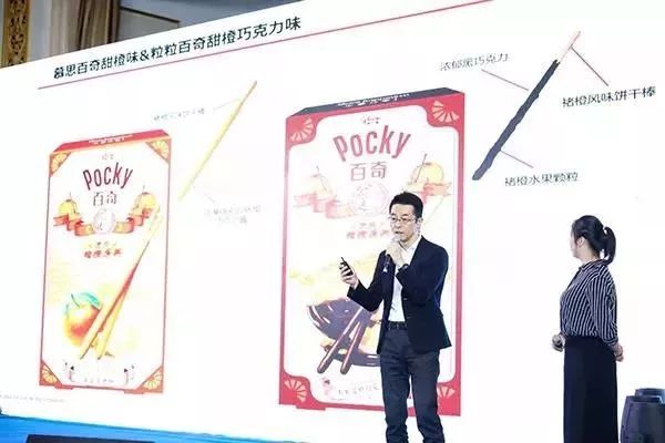 褚橙還發展產品深加工,在現場宣布了和格力高旗下百奇(POCKY)品牌的合作,把褚橙做成干粉,用于制作餅干。現場發布的兩款新品即將發售,分別是慕斯百奇甜橙味和粒粒百奇甜橙巧克力味。