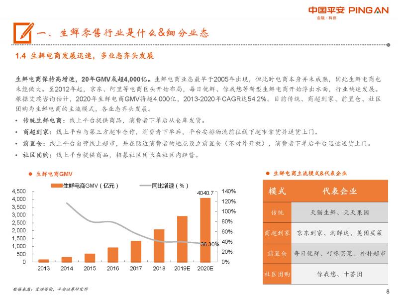 導讀:生鮮零售行業現代渠道占比不足一半,供應鏈&業態變革推動行業發展。