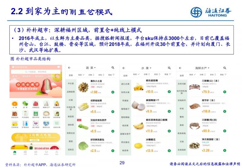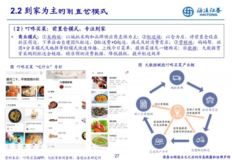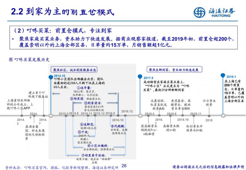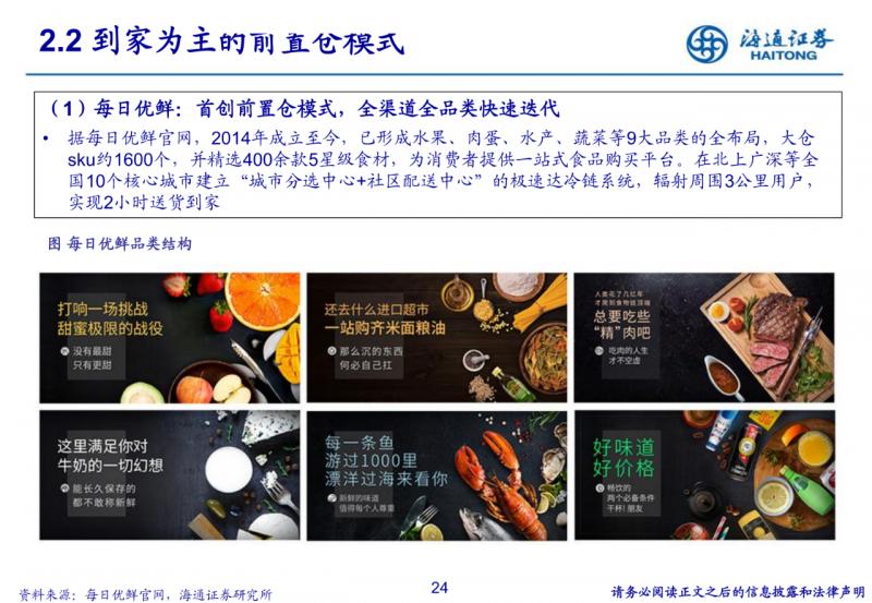 純到家的前置倉電商模式。將前置倉建在社區周邊,配送效率及物業可獲取性高,注重到家體驗、商品品質與 復購率,初期拉新若過度促銷會嚴重損耗毛利率。