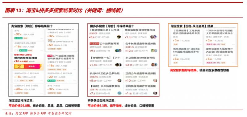 假如一個價格敏感的用戶搜索“插線板”,直接在淘寶上按價格從低到高排序搜索,其搜索結果前幾名的精準度與銷量都較差,并不能滿足需求。消費者的需求并非價格這個單一維度,而是一個由款式、質量、信譽等要素構成的復雜組合。搜索引擎最終需要給出一個綜合排序,而綜合排序的權重設置并非滿足所有用戶,不同的搜索引擎逐漸衍生出不同的人群定位。