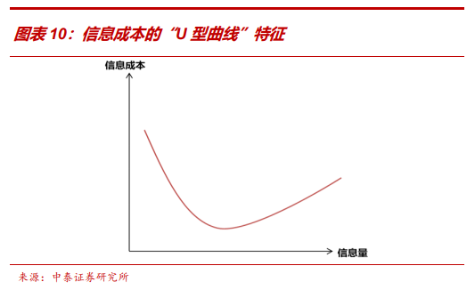 在這三種功能中,信息收集是規模經濟的,而信息篩選與信息背書則是負規模經濟的,三者結合,使信息成本呈現“U型曲線”。