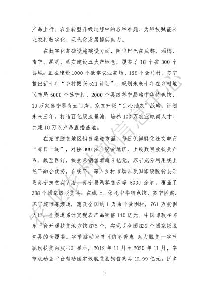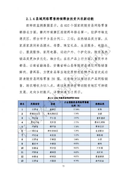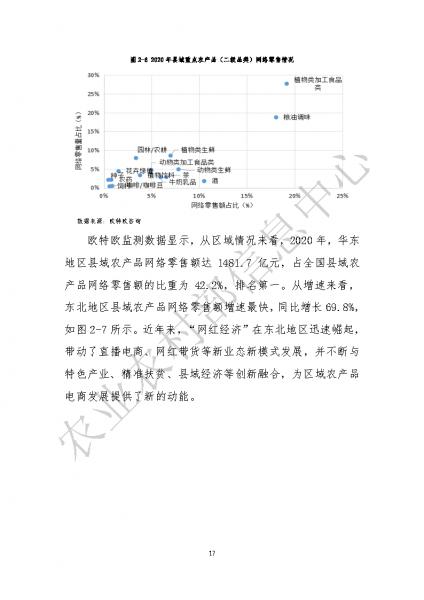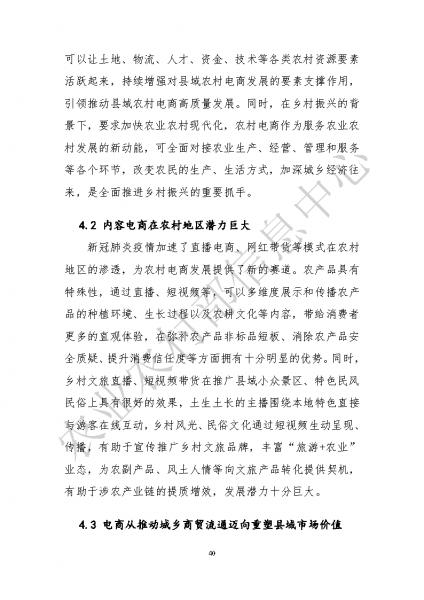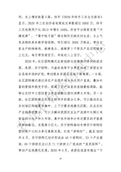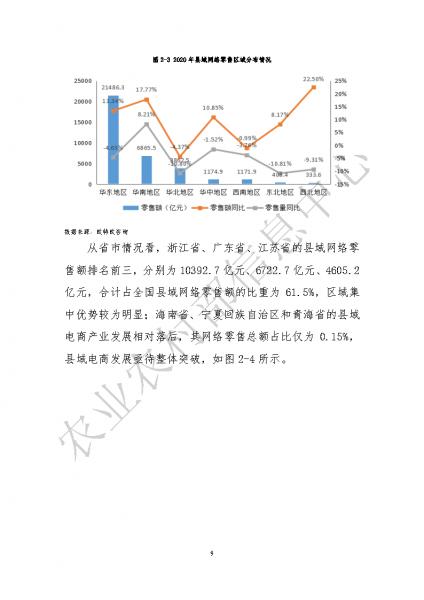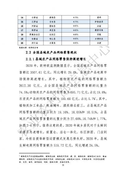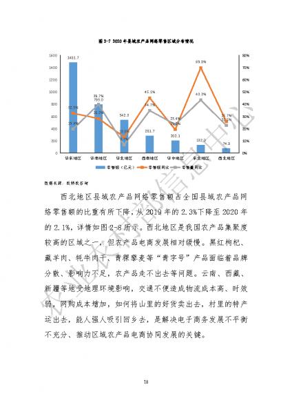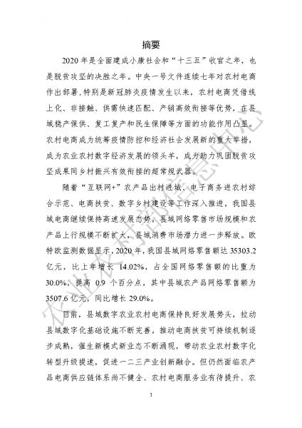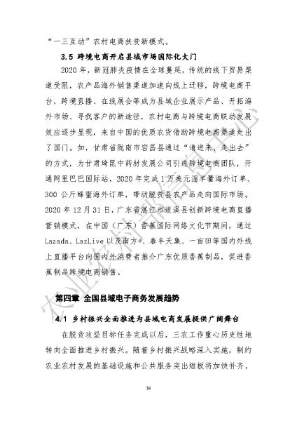 摘要:農(nóng)村電商憑借線上化、非接觸、供需快速匹配、產(chǎn)銷高效銜接等優(yōu)勢(shì),在縣域穩(wěn)產(chǎn)保供、復(fù)工復(fù)產(chǎn)和民生保障等方面的功能作用凸顯,直播帶貨、社區(qū)團(tuán)購(gòu)等新業(yè)態(tài)新模式不斷涌現(xiàn),跨境電商開(kāi)啟了縣域融入國(guó)際市場(chǎng)的大門(mén)。2021年是實(shí)施“十四五”規(guī)劃的第一年,全面推進(jìn)鄉(xiāng)村振興將為縣域電商發(fā)展提供更加廣闊的舞臺(tái),農(nóng)村電商的巨大潛能將加速釋放,數(shù)字化生活消費(fèi)方式變革將重塑縣域農(nóng)村大市場(chǎng),電商創(chuàng)新發(fā)展將助力農(nóng)業(yè)農(nóng)村數(shù)字化轉(zhuǎn)型駛?cè)肟燔嚨溃h域電商還將為構(gòu)建以國(guó)內(nèi)大循環(huán)為主體、國(guó)內(nèi)國(guó)際雙循環(huán)相互促進(jìn)的新發(fā)展格局提供新動(dòng)能。