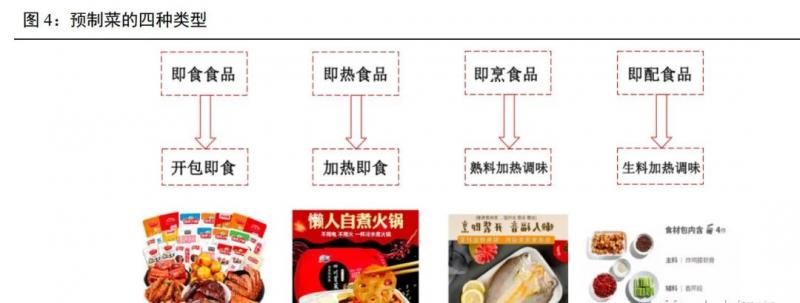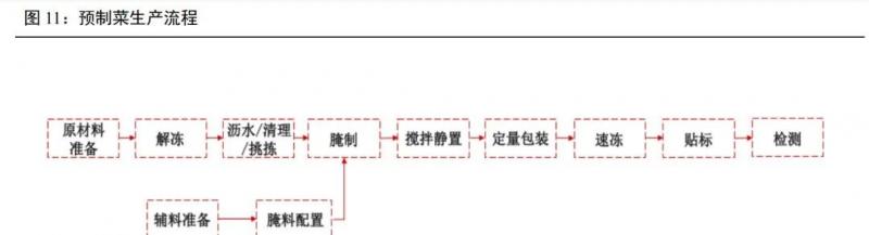 以新零售樣本盒馬為例,為了打造半成品菜,盒馬專門成立了“盒馬工坊”,打出“盒馬工坊,你的廚 房”slogan,200 多個 SKU 中半成品菜占一半。同時盒馬在 3R(即烹 ready to cook、即熱 ready to heat、即 食 ready to eat)領域加大投資,加成快手菜布局。西貝推出專門售賣預制菜品牌——賈國龍功夫菜,中央 廚房項目預計年產值 50 億元。此外 7-11、九毛九、叮咚買菜、美團買菜、每日優鮮、永輝等紛紛入局預制 菜行業。