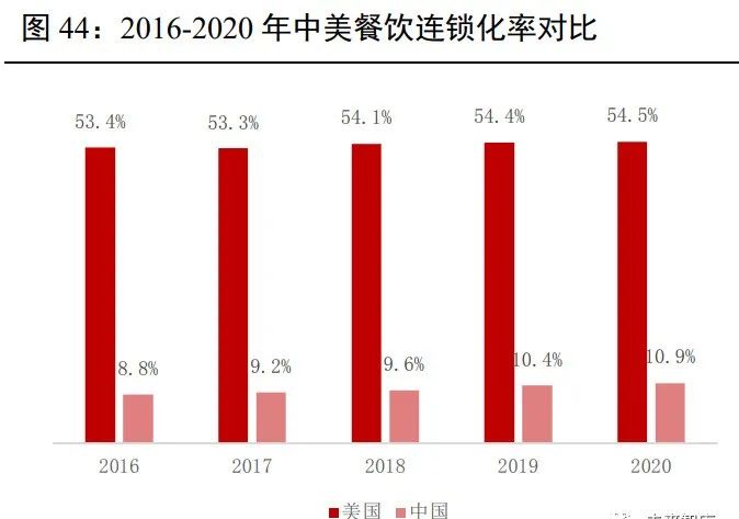 餐飲工業化趨勢下,預制菜市場有望持續擴容。2020 年我國預制菜市場銷售收入接近于美國市場。國內 餐飲流通、商超、電商新零售等渠道全面落地,基本覆蓋國內一線餐飲客戶和終端消費群體。同時預制菜 行業已經擺脫初加工產品定位,逐步轉向深加工、高附加值產品。近兩年受疫情影響,許多小型個人餐飲 店出現現金流短缺、庫存積壓、受局部疫情管控影響等困難而不得不關閉。反觀連鎖餐企,規模化和品牌 效應增強其應對風險能力,雖然不間斷疫情持續出現,但國內餐飲連鎖化率重壓之下進一步增長至 10.9%。對標美國、日本餐飲連鎖化率分別為 54%和 49%,我國連鎖化率和標準化旅提升空間仍然很大。餐飲企業 標準化、規模化、工業化需求,倒逼供應鏈改革,預制菜市場發展可期。