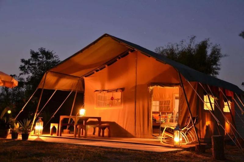 2.野營帳篷內部設施齊全,提供生活常備物品。住宿區設計采用動物和植物造型,讓習慣入住豪華酒店的旅客,在嘗試自然的原始風格的同時滿足都市設備的需求。營區設有WiFi無線上網,保持與世界同步。