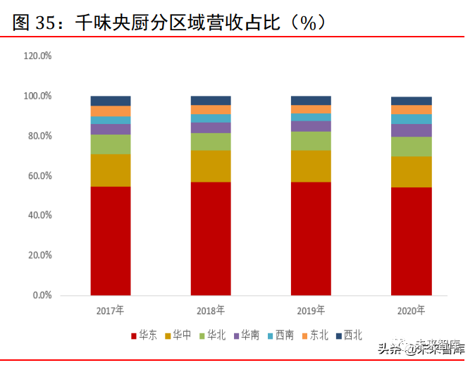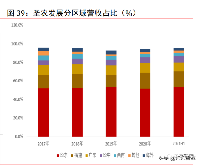 渠道以華東、華中地區為主,輻射全國。公司銷售以國內市場為主,其中華東地區收入占比維持在 50%以上,主要是公司前兩大直營客戶必勝(上海)食品有限公司、福建省華萊士食品股份有限公司歸屬華東地區,這兩家客戶收入占公司主營業務收入比例超過 30%。華中地區是公司的第二大市場,收入占比維持在 16%左右。華北、華南、西北、東北、西南等地收入占比均在個位數 水平,境外地區收入占比很小。