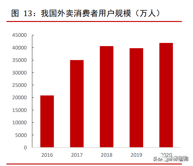 自 2015 年以來,我國外賣市場迅速發展。根據前瞻產業研究院數據顯示,2016-2020 年,我國外賣行業市場規模與外賣消費者用戶規模的年均復合增速分別為 41.40%與 19.04%。2020 年我國外賣行業市場規模與外賣消費者用戶規模分別達 6646.2 億元與 4.19 億人。隨著我國城鎮化進程不斷加速與 8090 后消費群體的崛起,預計我國外賣市場未來將持續擴容。由于外賣具有 時效性的特點,外賣數量增加對餐飲企業的出菜速度有了更高的要求。而預制菜可以節省餐飲企業的出菜時間,提高外賣配送效率,愈發成為餐飲企業經營的選擇。在外賣快 節奏的帶動下,預計餐飲企業對預制菜的需求有望延續。