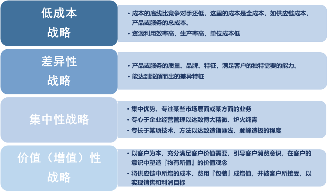 3、集中性戰(zhàn)略:利用專業(yè)化和知識化服務,強化競爭對手進入成本,注重物流環(huán)節(jié)和網絡化布局,在某個領域做全鏈路的管理。