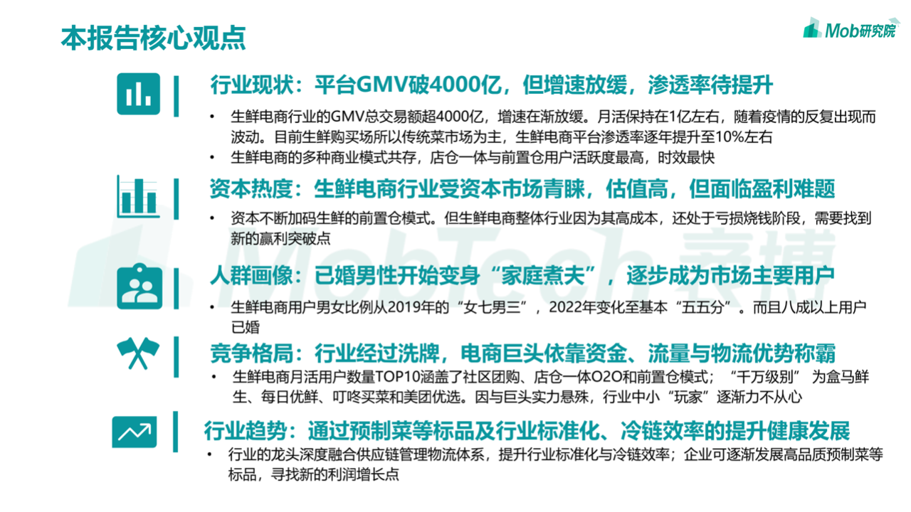 導(dǎo)讀:生鮮電商行業(yè)的GMV總交易額超4000億,增速在漸放緩。月活保持在1億左右,隨著疫情的反復(fù)出現(xiàn)而波動(dòng)。目前生鮮購買場所以傳統(tǒng)菜市場為主,生鮮電商平臺(tái)滲透率逐年提升至10%左右。
