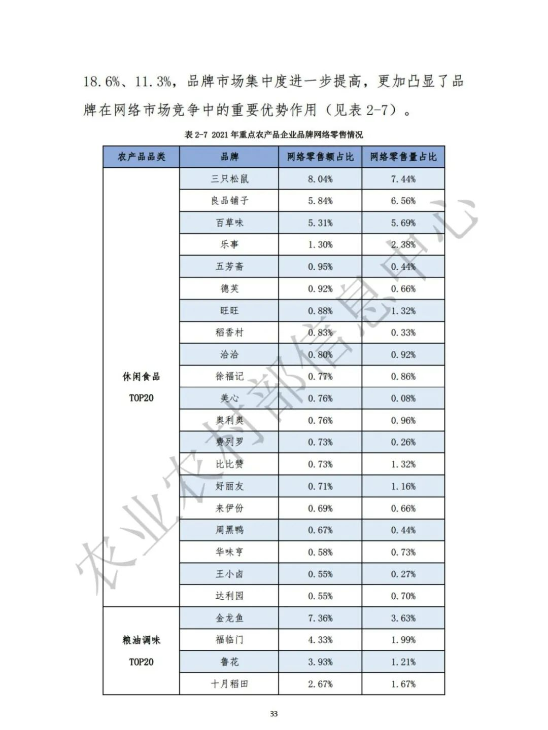 2、農村電商助力農業品牌化發展迎來新機遇。目前 省級重點培育的區域公用品牌3000多個, —批優秀企業品牌和產品品牌脫穎而出,脫貧地區品牌農產品平均溢價超過20%。隨著農產品上行規?;瘞淼母偁幖觿?,國家品牌強農戰略的推進,以及國內新型消費、品質消費的崛起,再加上電商平臺和品牌公共服務能力的不斷提升,多重因素疊加將推動農業品牌化發展大幅提速,農村電商將憑借數字化優勢為農業品牌發展帶來新的機遇。