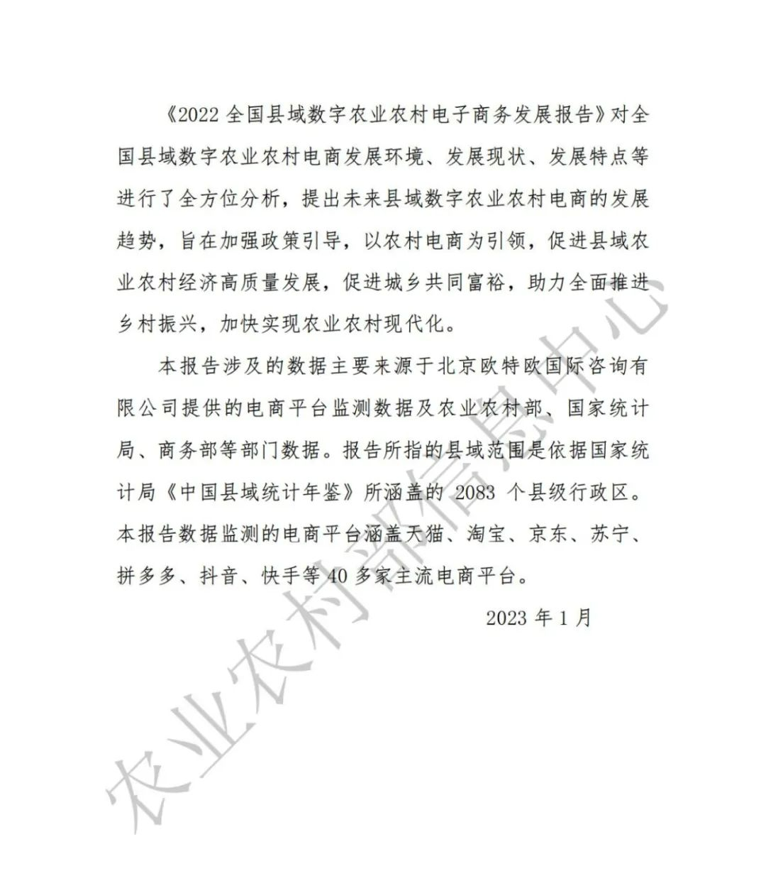 近日,農業農村部信息中心、中國國際電子商務中心發布了《2022 縣域數字農業農村電子商務發展報告》,報告分析了全國縣域電子商務發展的4個趨勢: