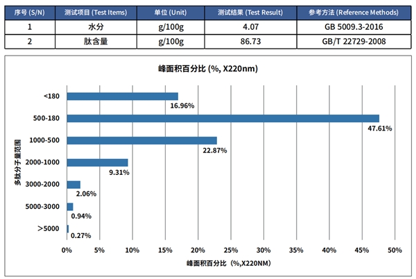 樂(lè)益施酵母肽中小分子肽分子量分布