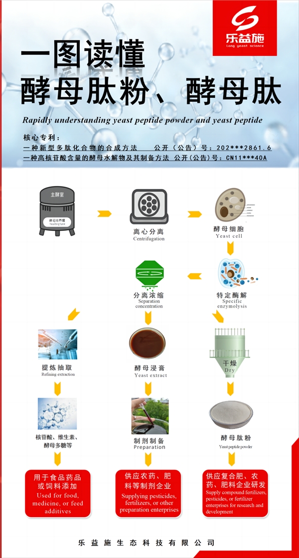 樂(lè)益施生態(tài)主打產(chǎn)品有:酵母肽粉YPP、酵母源氨基酸多肽制劑YPD、酵母液。