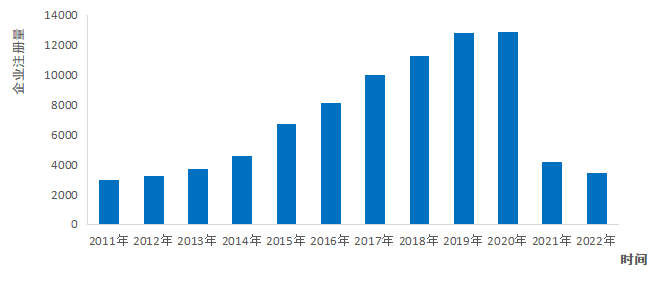 圖2-3 2013-2022中國預制菜相關企業注冊量 (圖表數據來自邁點研究院《2022年中國預制菜產業發展報告》和艾媒咨詢《2022年中國預制菜產業發展白皮書》)
