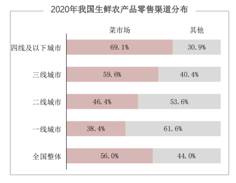 (六)銷售端——農產品銷售渠道仍以菜市場等線下為主,線上滲透率低