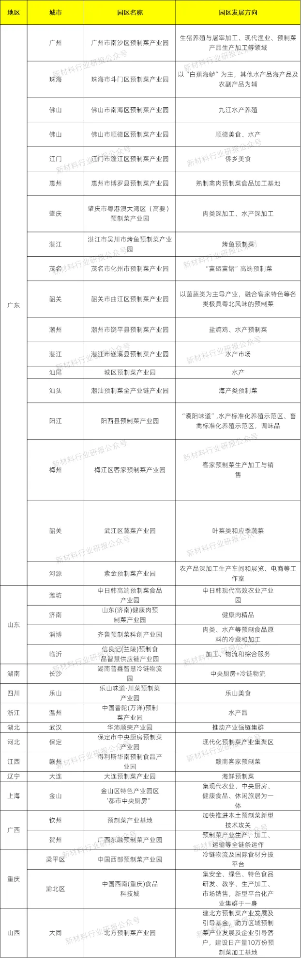 部分省市預制菜產業園發展概況
