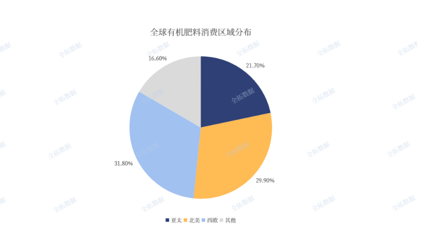 不難看出當(dāng)前全球有機(jī)肥行業(yè)發(fā)展消費(fèi)區(qū)域特征尤為顯著,主要集中在歐、美、亞等經(jīng)濟(jì)較發(fā)達(dá)、種植業(yè)發(fā)達(dá)的區(qū)域。其中西歐地區(qū)有機(jī)肥使用量占比最高約為31.8%,北美約29.9%,亞太地區(qū)約占比21.7%,其他地區(qū)占比約為16.6%。