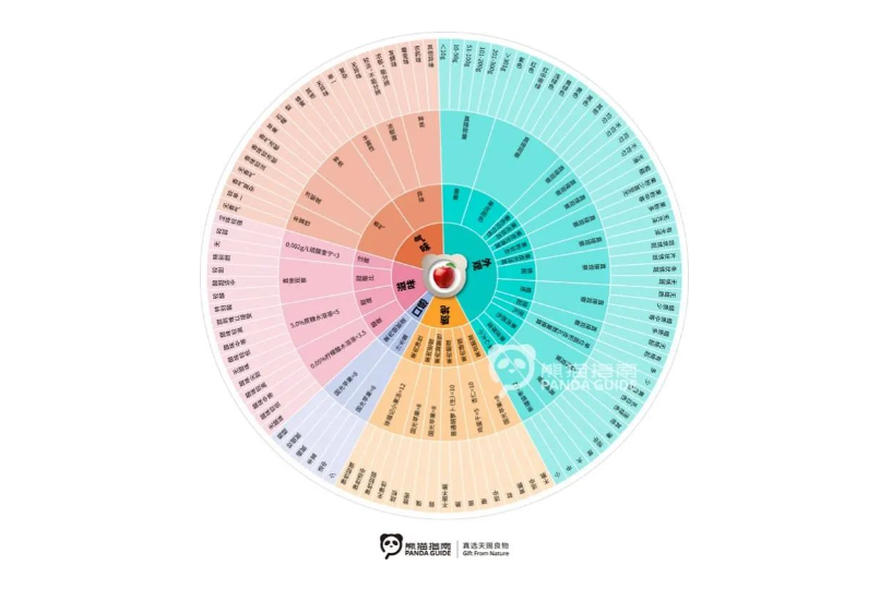 在熊貓指南感官實驗室,電子舌等仿生儀器正在檢測農產品的口感。借鑒法國葡萄酒品鑒的“風味輪”技術,熊貓指南創新性地將其應用于農產品評測,從外觀、香氣、滋味、口感、質地五個維度構建了一套科學的評價體系——熊貓指南風味輪,集成了同類農產品中與好吃相關的感官維度,將模糊的“好吃”體驗轉化為數字化信息,通過風味輪對比產品的外觀、滋味、口感、氣味等200項差異,從中知道不同品種的水果差異是什么,并給消費者講清楚這背后的邏輯,指導消費者食用,就能讓“小眾”變成“大眾”。
