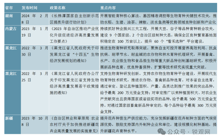 02 各省市層面的政策匯總及解讀——31省市生物育種行業政策匯總