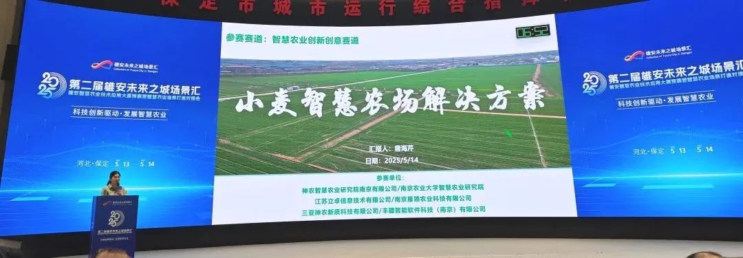 在剛剛結束的“雄安智慧農業技術應用大賽決賽”中,神農智慧農業研究院南京有限公司和江蘇立卓信息技術有限公司等單位共同申報的《小麥智慧農場解決方案》在“智慧農業創新創意賽道”榮獲二等獎。
