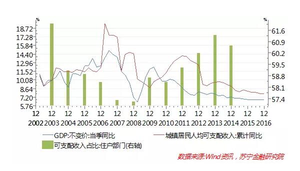 居民消費(fèi)升級(jí)和消費(fèi)支出的持續(xù)增長(zhǎng),首要條件無(wú)疑是居民可支配收入保持不低于整體經(jīng)濟(jì)的增速。