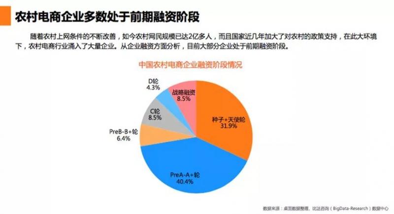 根據(jù)數(shù)據(jù)顯示,2018年零售額持續(xù)增長(zhǎng),但占總體電商市場(chǎng)份額沒(méi)有提高。農(nóng)村電商的利好政策不斷出臺(tái),農(nóng)村網(wǎng)民規(guī)模不斷擴(kuò)大,C輪融資輪次增多,中國(guó)農(nóng)村電商產(chǎn)業(yè)總體處于良好的發(fā)展環(huán)境。
