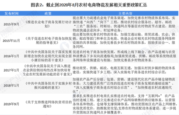 2015年開始政府對農村電商物流發展較為關注,對冷鏈物流建設發展密切關注,相繼出臺一系列政策意見,給中國農村電商物流行業的發展帶來比較好的政策環境。