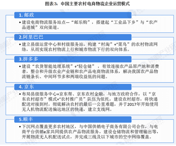 在國家政策的號召與支持下,農村地區巨大而有潛力的電商物流市場吸引了眾多電商物流企業(典型代表有郵政、阿里巴巴、拼多多、京東和順豐等)在農村布局,積極探索切實可行的農村電商物流模式。