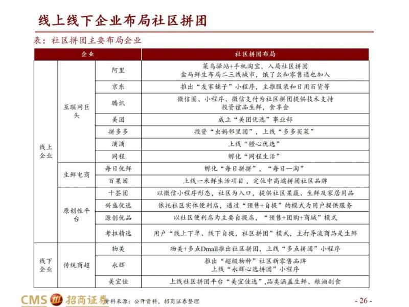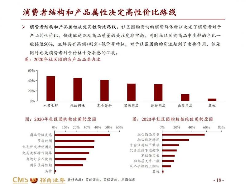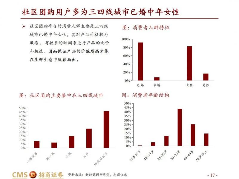 (1)過去的生鮮電商主要覆蓋一二線城市,目前在二三線城市,社區團購的優勢非常明顯,社區拼團在價格上要低于淘寶等線上電商平臺售價,同時它的及時性要好于傳統零售電商。