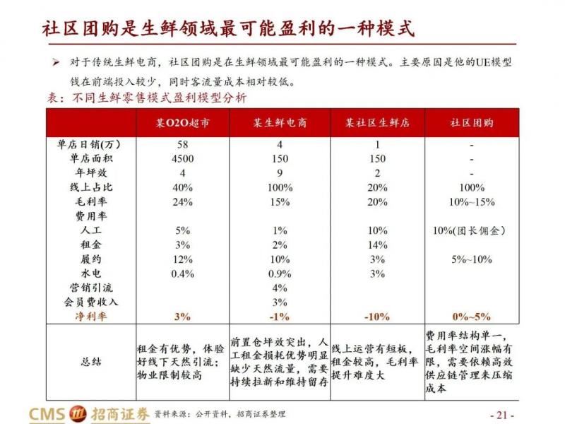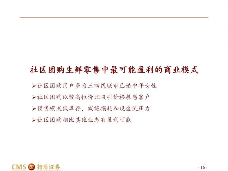 社區團購生鮮零售中最可能盈利的商業模式。社區團購相比于其他零售電商有諸多優勢。