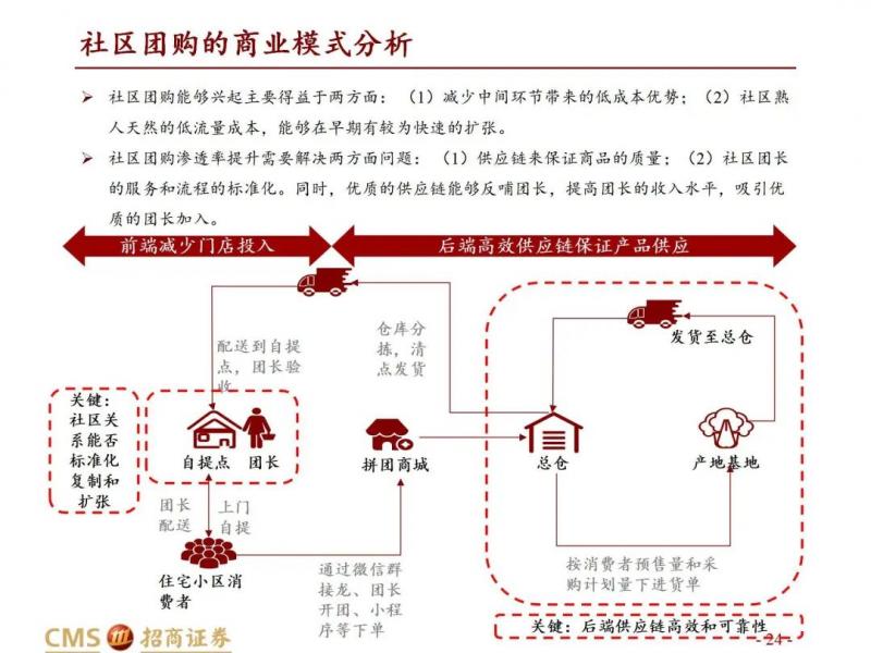 供應鏈是核心,優質團長前期是稀缺資源。社區團購能夠興起主要得益于兩方面: