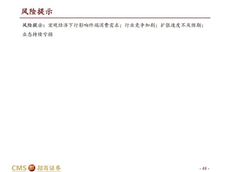 風險提示:宏觀經濟下行影響終端消費需求;行業競爭加??;擴張速度不及預期;業態持續虧損