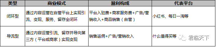 該模式下,平臺依托優質內容引導價值觀型消費決策,按照平臺商品是否自營可以分為2類,具體的商業模式與盈利構成如下表: