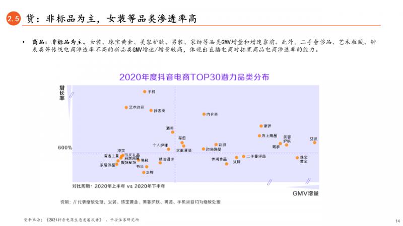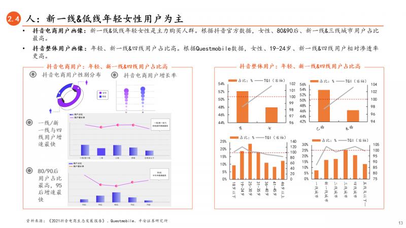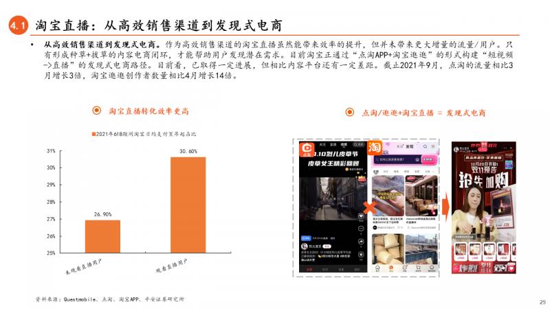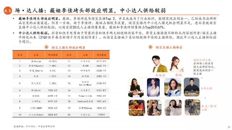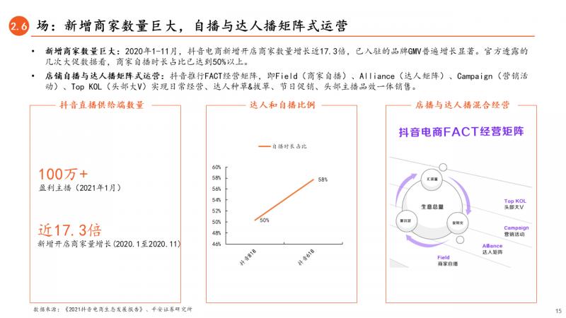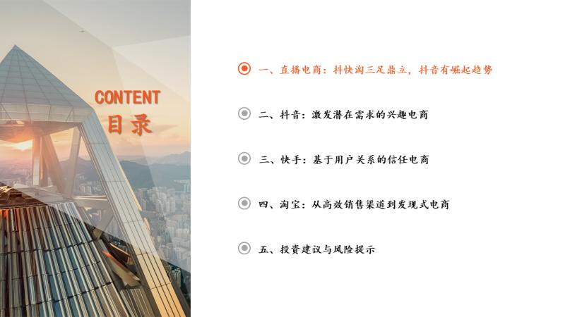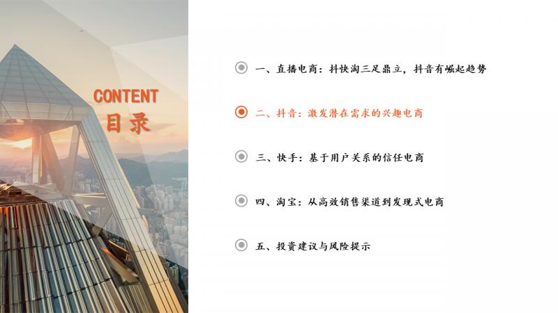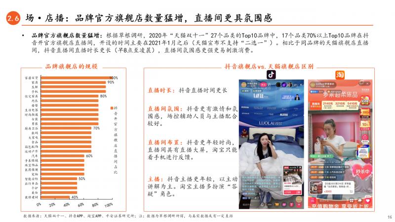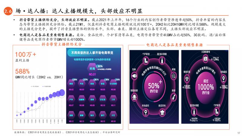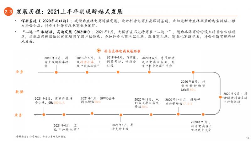 2021年直播電商行業繼續高速增長,受益于電商基礎設施和用戶滲透率的提升,抖音電商異軍突起增速高于同業。而抖音、快手、淘寶直播定位各有不同,分別定位“興趣電商”、“信任電商”、“發現式電商”,抖快淘三足鼎立的格局至此形成。