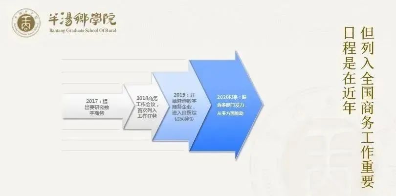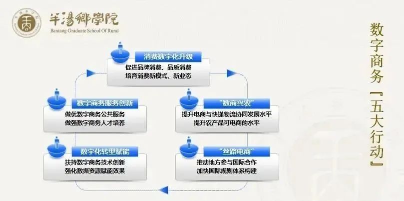 然而,在中國,數字商務被列入全國商務工作的重要日程,的確是近年的事。隨著數字中國戰略的提出和推進,大力發展數字經濟,在各地、各部門工作部署中的位置日益提升。如同農業農村部門加強研究和部署數字農業農村工作一樣,商務部門也不斷強化了數字商務工作。