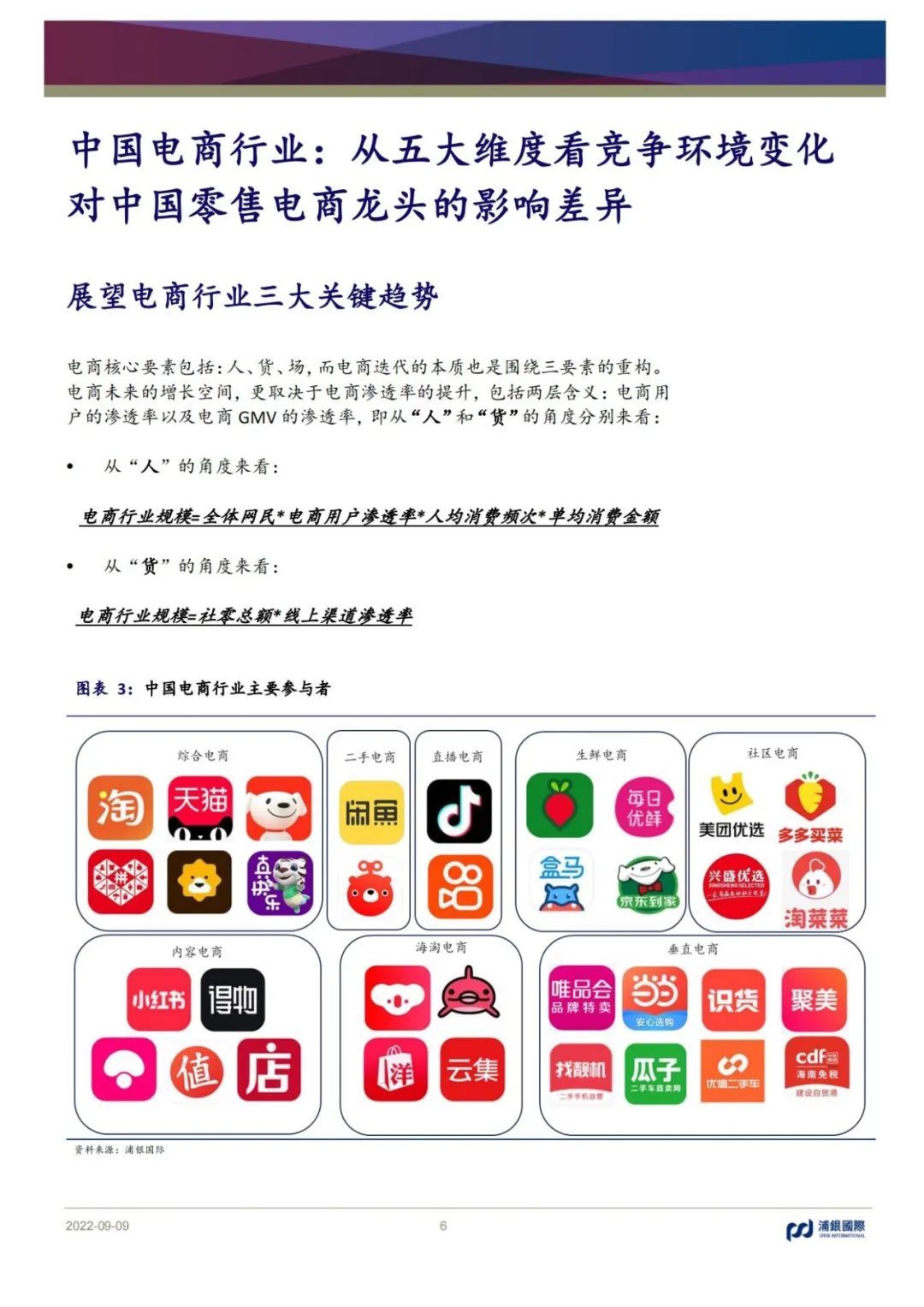 從“人、貨、場”三個角度來看,下沉用戶爭奪、近場電商崛起及去中心化下的渠道多元化是中國電商行業的三大主題。直播帶貨分食和政策變化等因素加劇行業競爭并助推競爭格局洗牌。