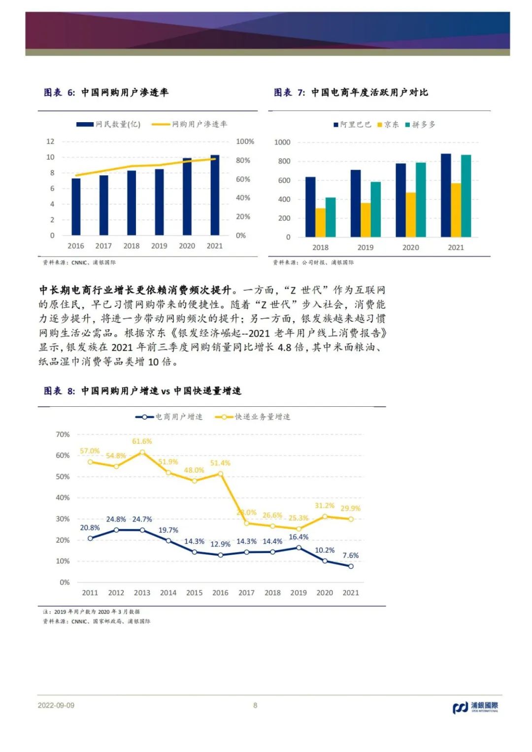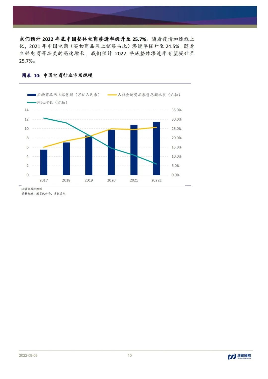中國零售電商經過近二十年的衍變發展,逐漸由增量步入存量時代,預計疫情后逐步復蘇,未來穩健增長,三年年均市場規模復合增速10%。