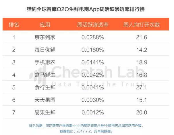 在libra目前監測到的O2O生鮮電商App中,盒馬鮮生App的周活躍滲透率排名第四。