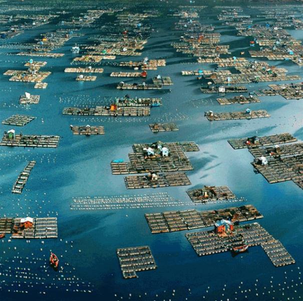 在我國東部、南部海岸線上,漂著上百萬個房子和網箱,這里是中國的“海鮮農場”。中國是最大的海鮮消費國,但中國每年6500萬噸海鮮總產量中,只有1500萬噸是捕撈的,其余5000萬噸都來自水產養殖農場,而日本90%的海鮮都來自捕撈。