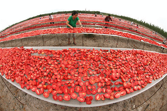 這里又有一個你可能不知道的事實:中國每年番茄產量超過5500萬噸,出口量占全球1/3,其中1400萬噸來自新疆。中國還是世界第三大番茄醬產區,你在國外吃個烤肉、薯條,沾的番茄醬很有可能是來自祖國的。