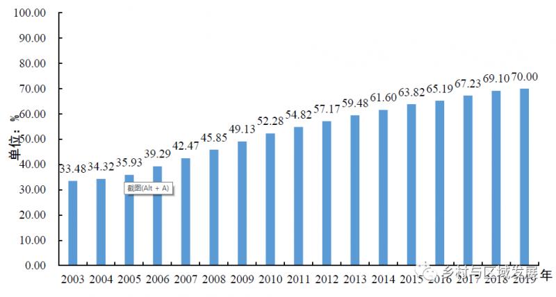圖1 2003-2019年全國(guó)農(nóng)作物耕種收綜合機(jī)械化率變化圖