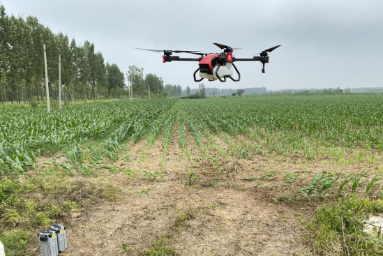 “先買的大飛機P80,能撒肥,用起來挺好。不過玉米生長期也就3個月,為了追趕農時就又買了臺V40。”據了解,這兩臺農業無人機借助極飛的水冷散熱技術和燃油發電機,15分鐘不到就可以充滿一組電池,兩組電池配合使用就可以保證一臺無人機的循環高效作業。