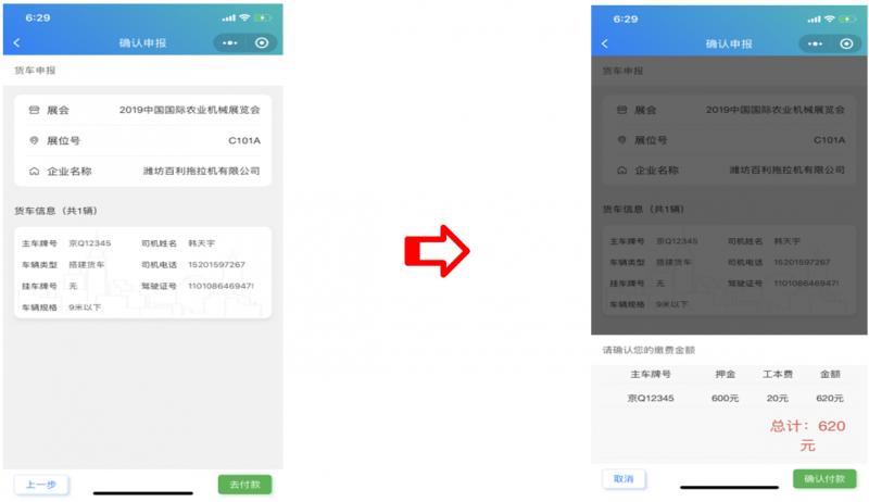 3、提交貨車信息后,進入付款界面,確認后進行線上付款,完成繳費;