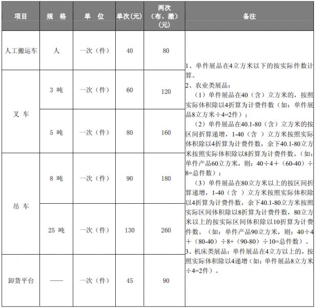 3、為保障現場裝卸安全有序管理物流秩序,請使用大會指定主場物流服務商提供的裝卸服務工具。禁止外帶未經主場物流服務商備案的裝卸工具。