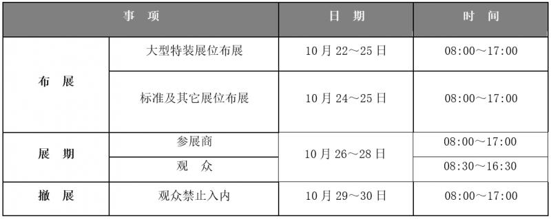 為確保布展期間的安全,展會規定:10月22日至25日謝絕參觀及無證人員入場,參展商一律憑《展商證》(帶照片)入場布展,一人一證,不得轉借他人。一經發現,沒收該《展商證》。