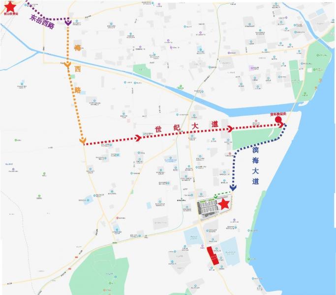 卸貨平臺:濱海大道(貨車分類處二)直行,融合路與海灣路交叉口右轉,海灣路排隊等候進場;
