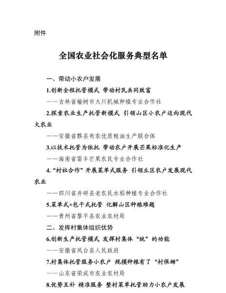 附件:全國農(nóng)業(yè)社會化服務(wù)典型名單