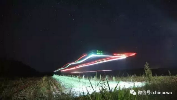 ▲長時間曝光拍攝P20無人機夜間作業圖
