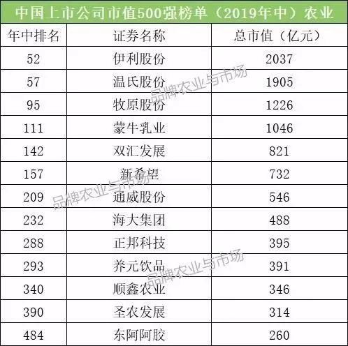 溫氏、牧原、雙匯、新希望……這 13 家農企,成 2019 上半年中國上市公司市值 500 強!