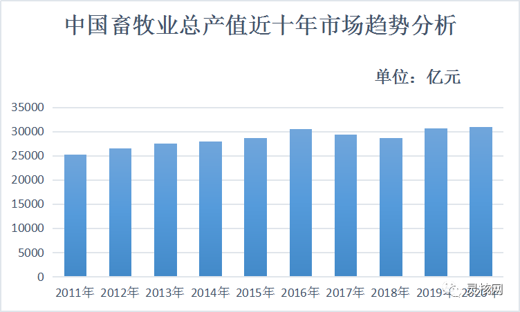 據統計局數據顯示,2016年國內畜牧業產值達30461.17億元,到2018年產值下降到28697.4億元。據2016年政府發布的《全國農業現代化規劃(2016—2020年)》提出,到2020年我國畜牧業產值占農業總產值比重超30%。